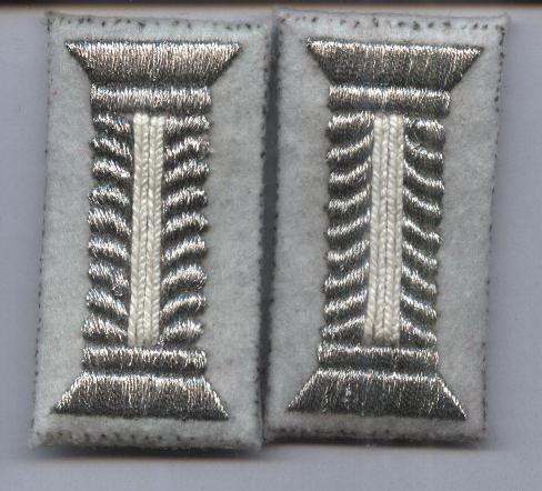 German WW Army collar tabs, hand embrd in Aluminum and bullion wire. many other styles also available.