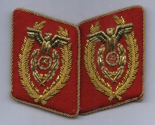 German WW High ranked Luftwaffe collar tabs, hand embrd in Aluminum and bullion wire. many other styles also available.